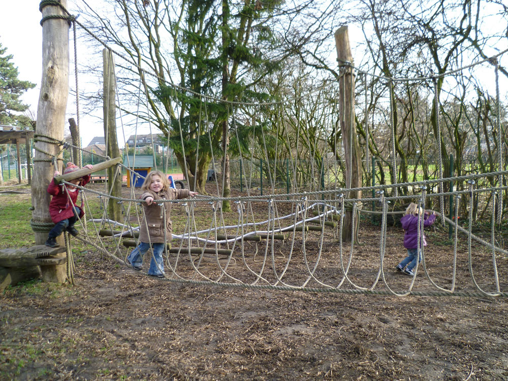 Wir unterstützen den Bewegungsdrang der Kinder. Unsere Turnhalle bietet vielfältige Bewegungsmöglichkeiten: Kletterwände, Wippen, Seile, Bälle, Fahrzeuge, Balancierbretter und vieles mehr laden die Kinder ein, sich körperlich zu entfalten, neue Fähigkeiten zu entwickeln, mutig zu sein und das Selbstbewusstsein zu stärken. Außerdem nutzen wir auch beinahe täglich unser großes Außengelände – daher sollten die Kinder immer wettergerechte Kleidung vor Ort haben, z.B. Gummistiefel und Regenbekleidung.