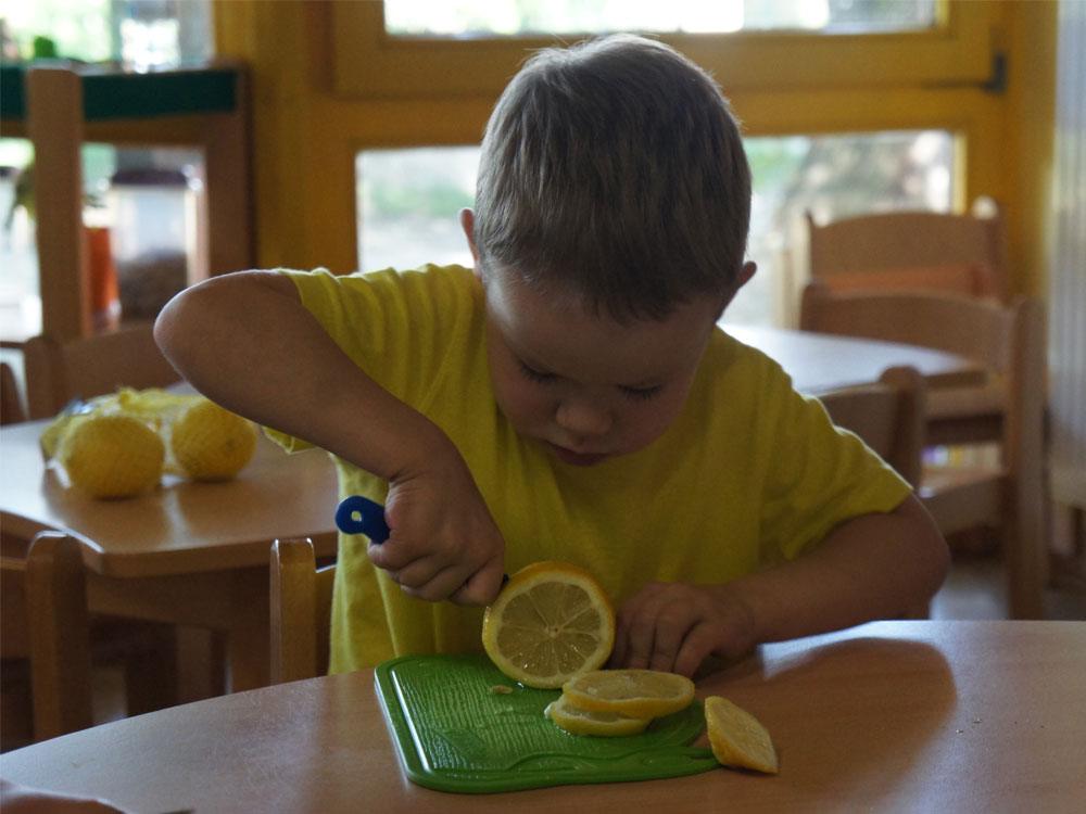 Das Frühstück wird gemeinsam mit den Kindern in der Kita vorbereitet. Das gesunde, ausgewogene Mittagessen wird täglich frisch von einem Caterer angeliefert. Mit vielfältigen Aktionen wecken wir das Interesse der Kinder an den Vorteilen einer gesunden Ernährungweise. Eine saisonale, sowie regionale Obst- und Rohkostplatte steht den Kindern täglich zur Verfügung.